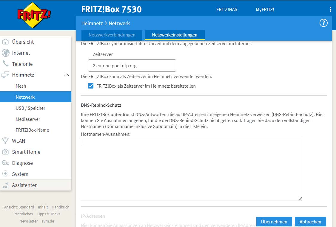 6. Scrollen Sie weiter runter zu „DSN-Rebind-Schutz“: