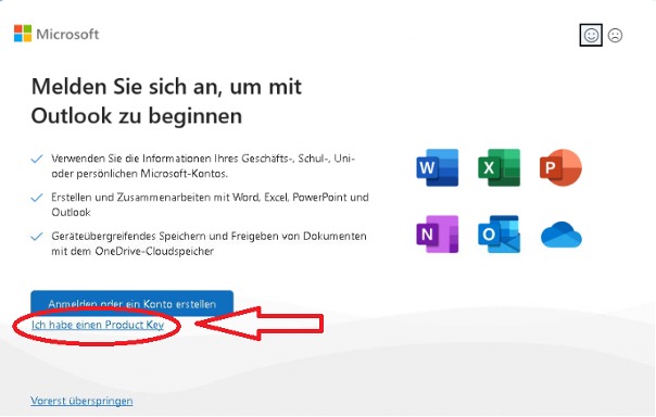2. Klicken Sie in diesem Fenster auf „Ich habe einen Product Key„.