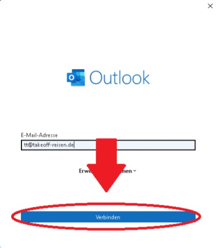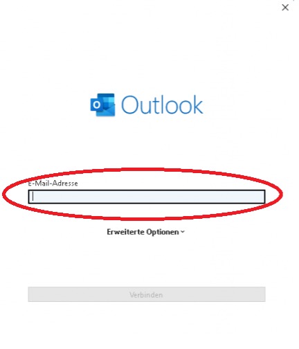 3. Geben Sie Ihre Microsoft 365 E-Mail-Adresse ein und klicken Sie anschließend auf „Verbinden“.