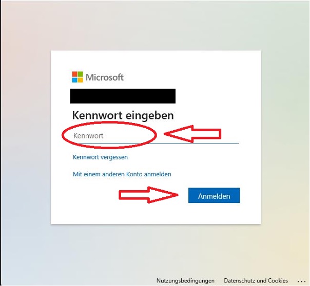 4. Outlook leitet Sie nun zur Microsoft-Anmeldeseite weiter. Geben Sie bitte Ihr Passwort ein.
