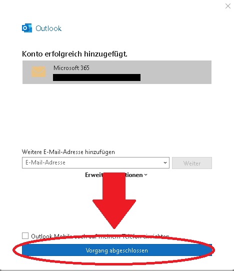 5. Nun sehen Sie die Meldung „Konto erfolgreich hinzugefügt“. Bitte klicken Sie auf „Vorgang abgeschlossen“.