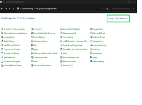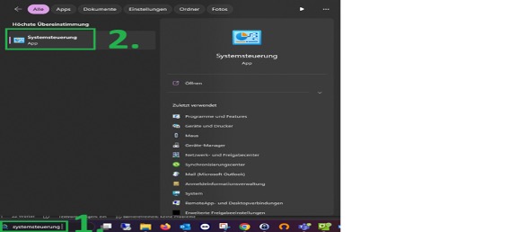 1. Geben Sie bitte über die Suchleiste den Begriff „Systemsteuerung“ ein.