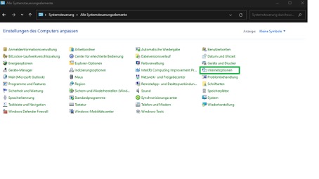 Klicken Sie nun bitte auf „Internetoptionen“.