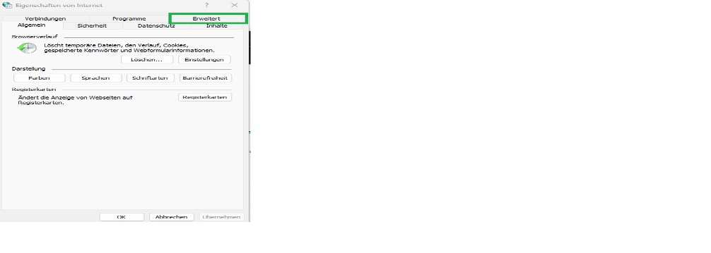 Klicken Sie im neuen Fenster bitte auf „Erweitert“.